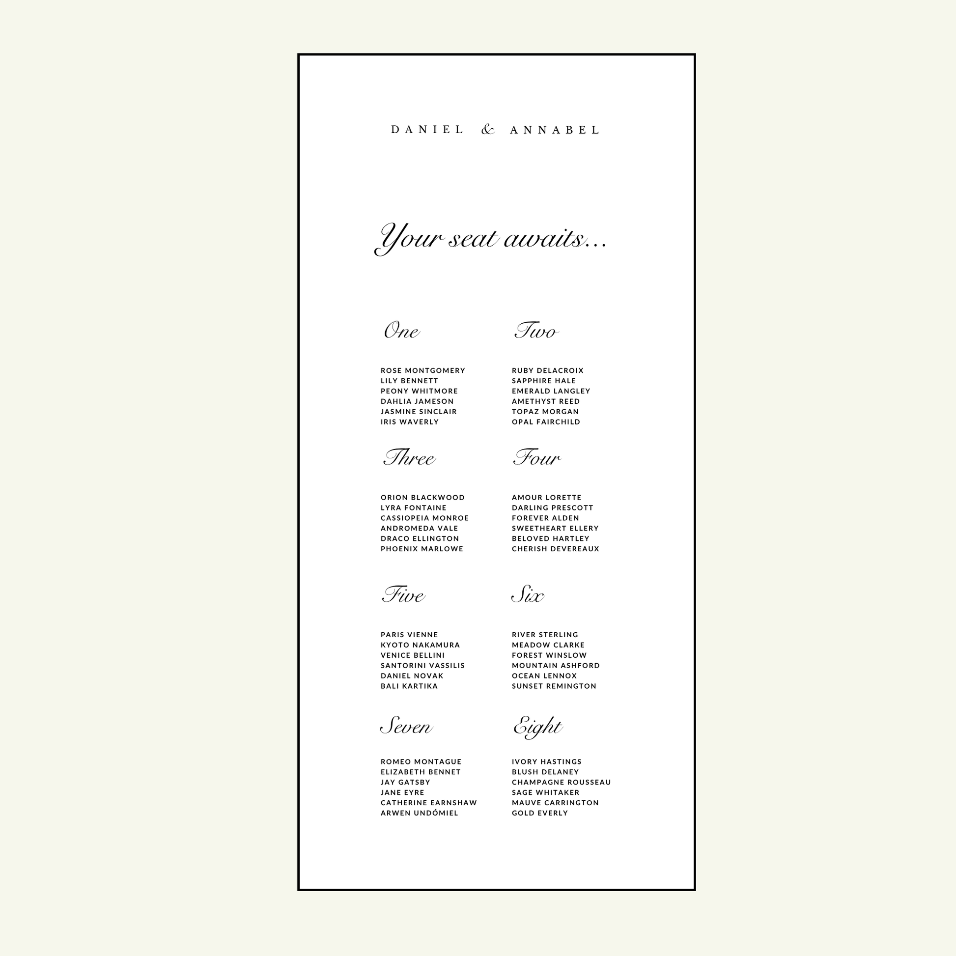 Custom Vinyl Lettering – Each name and table number is hand-printed with high-precision, durable vinyl for crisp and lasting detail.