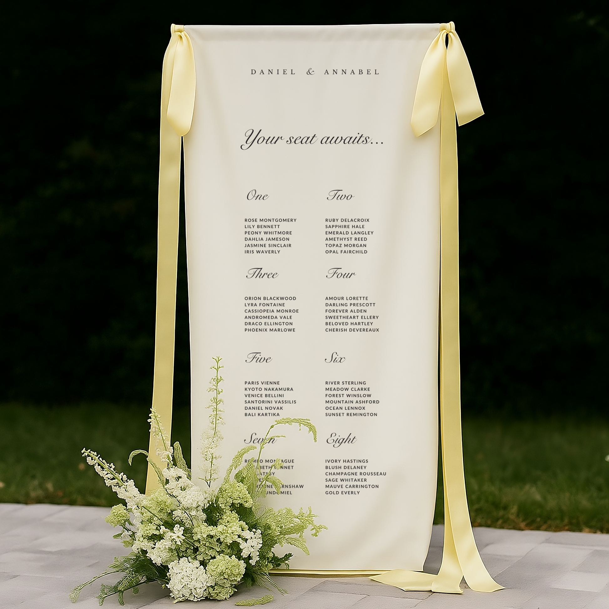 Luxury Wedding Seating Chart – Custom Text (Viscose Silk or Cotton Canvas)